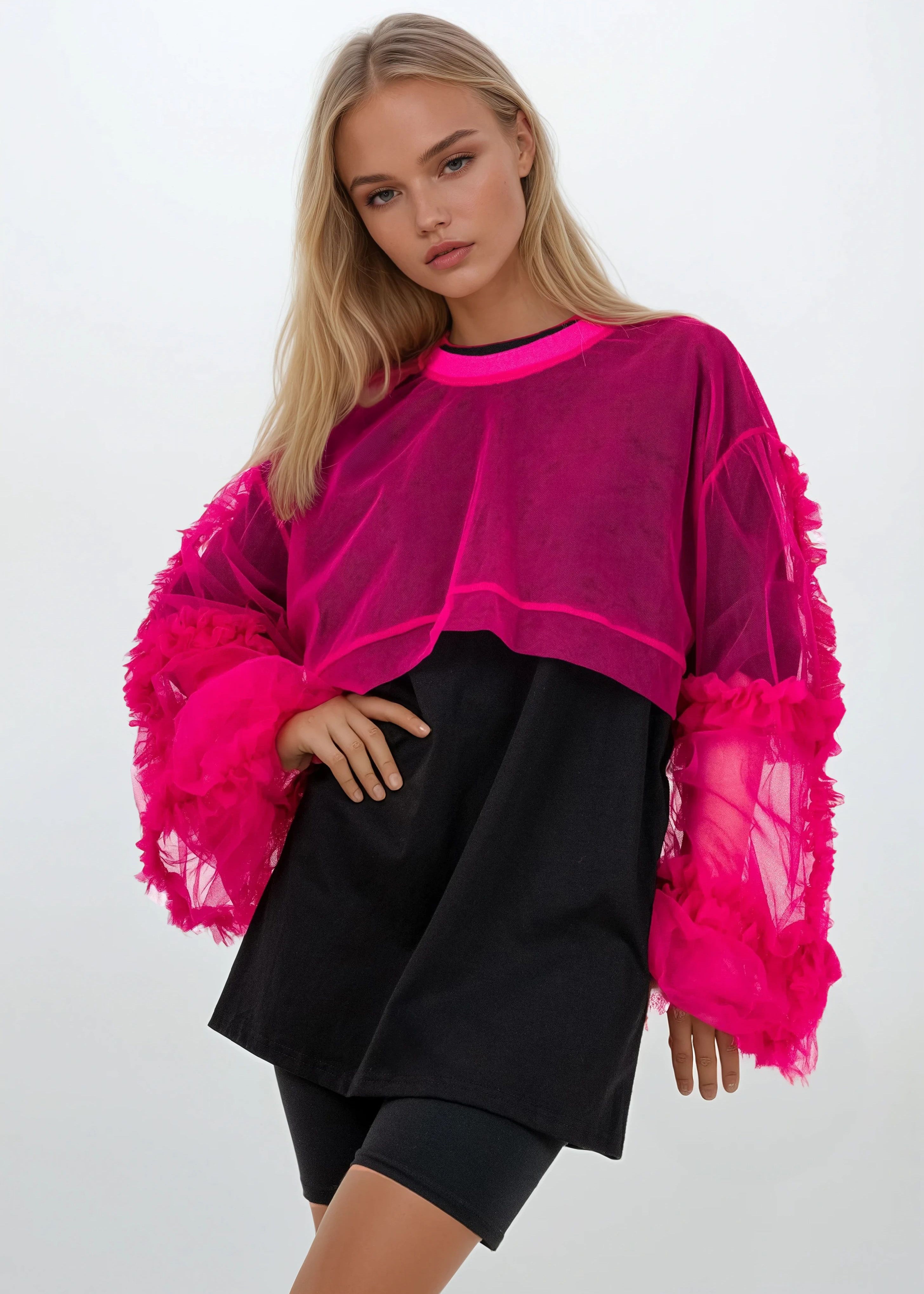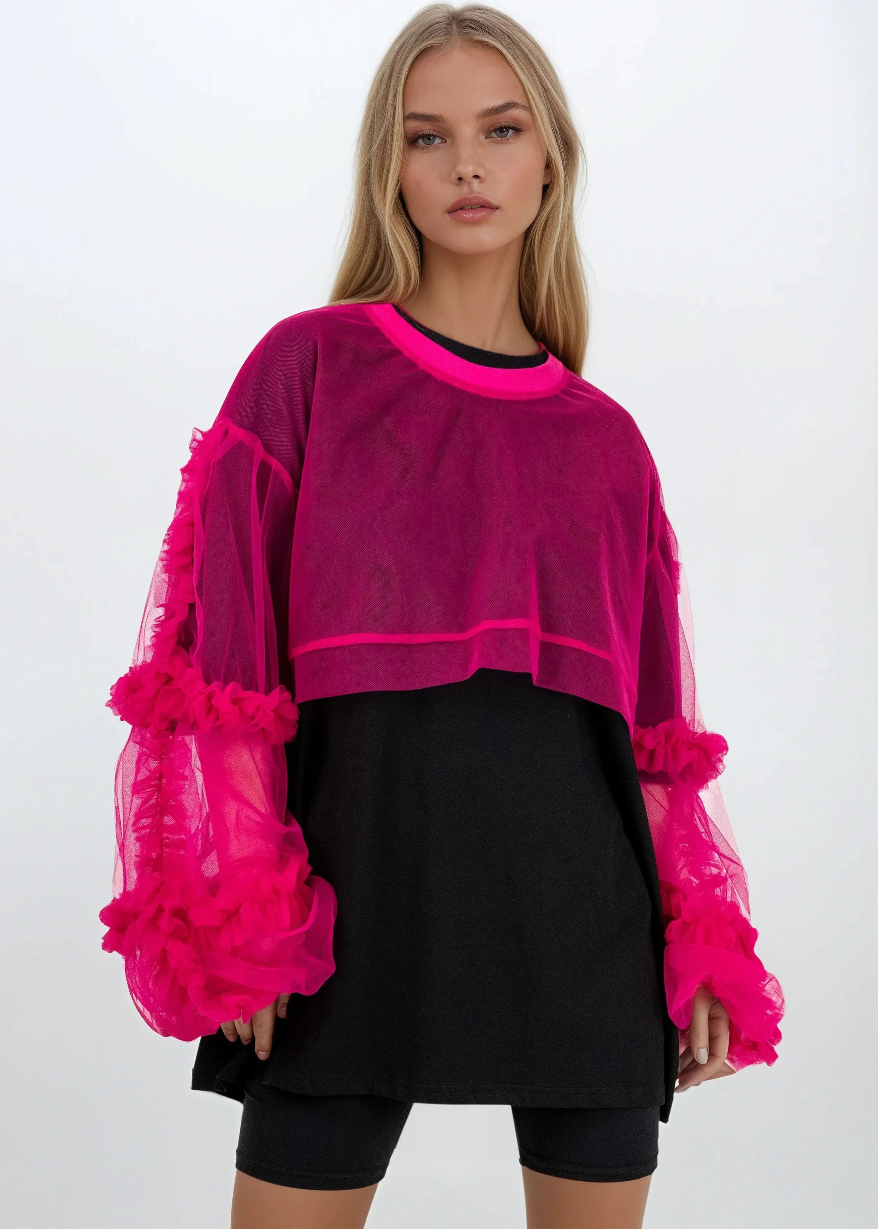 Ruffled Sleeve Tulle Tunic