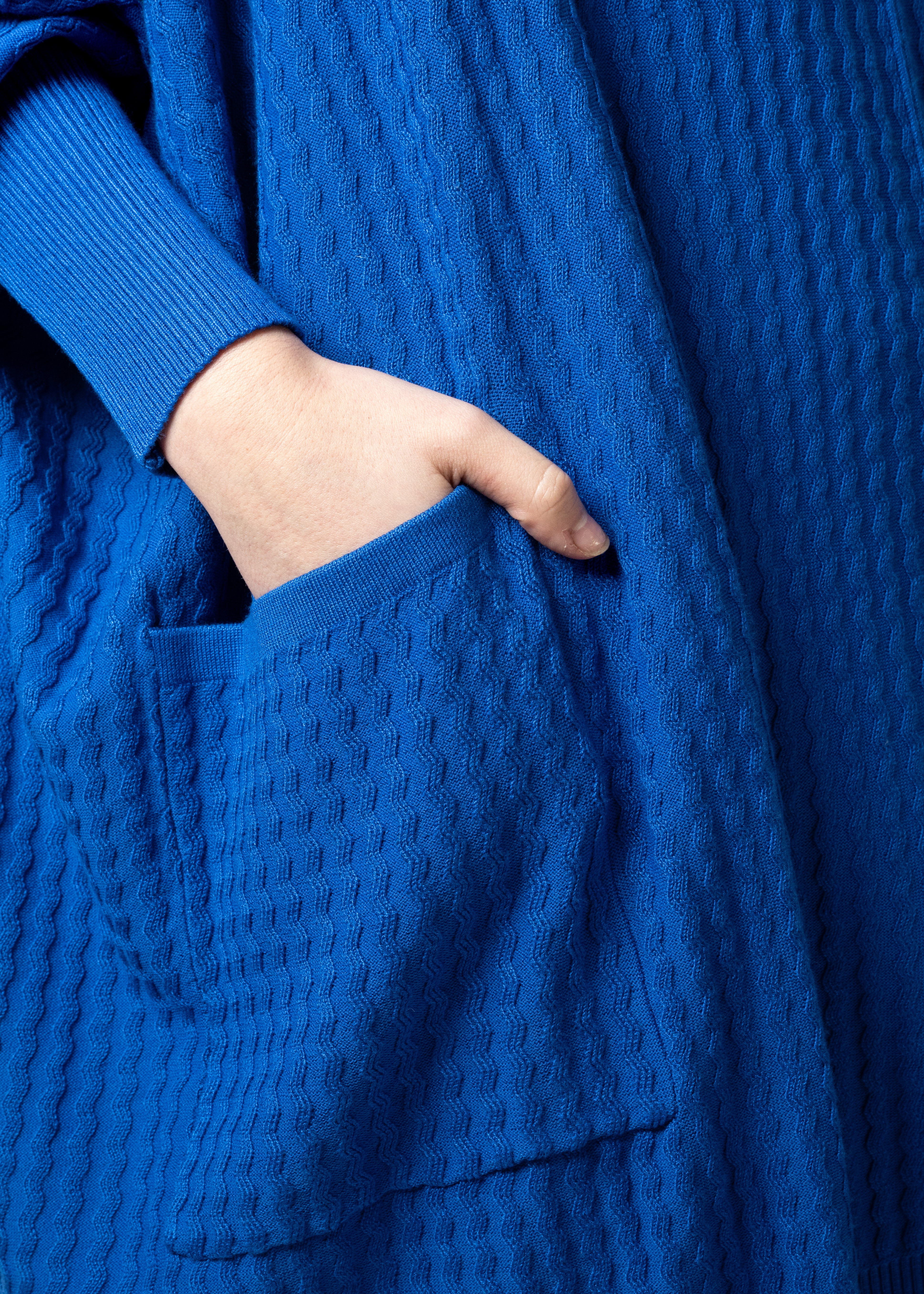 - Textured waffle-knit fabric that looks bold, feels cozy