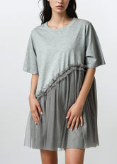 - Oversized tee meets deconstructed glam with asymmetrical tulle layers