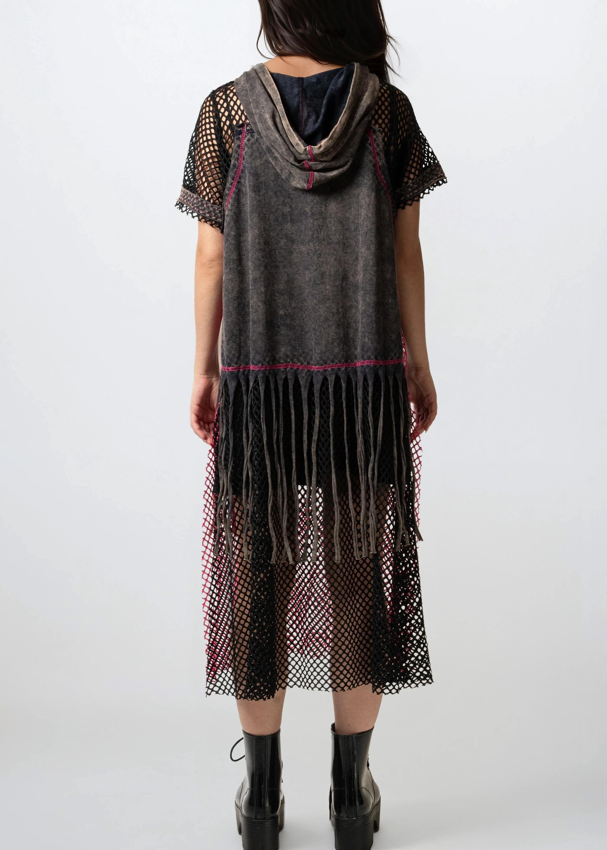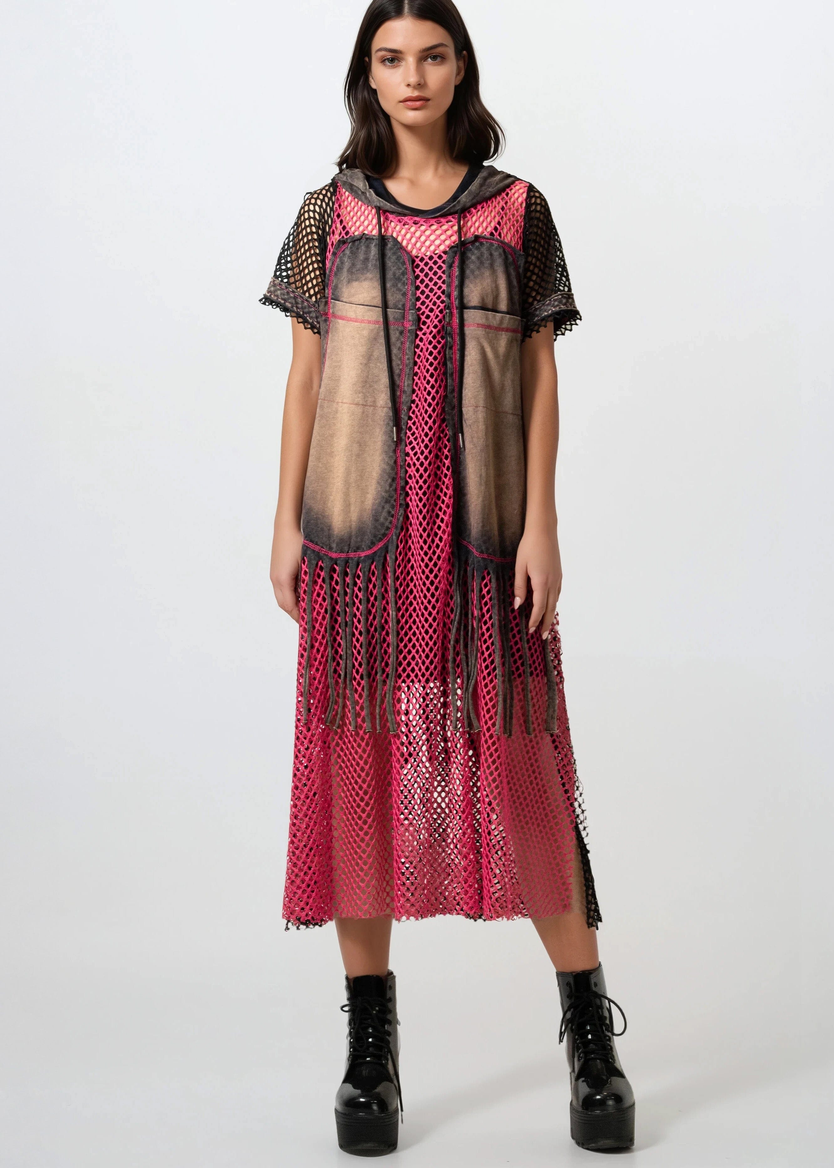 Contrast Fishnet Hoodie Dress Multicolor / One size
