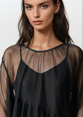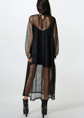 Long Sleeve Sheer Mesh Overlay Black / One size