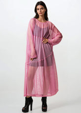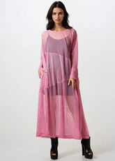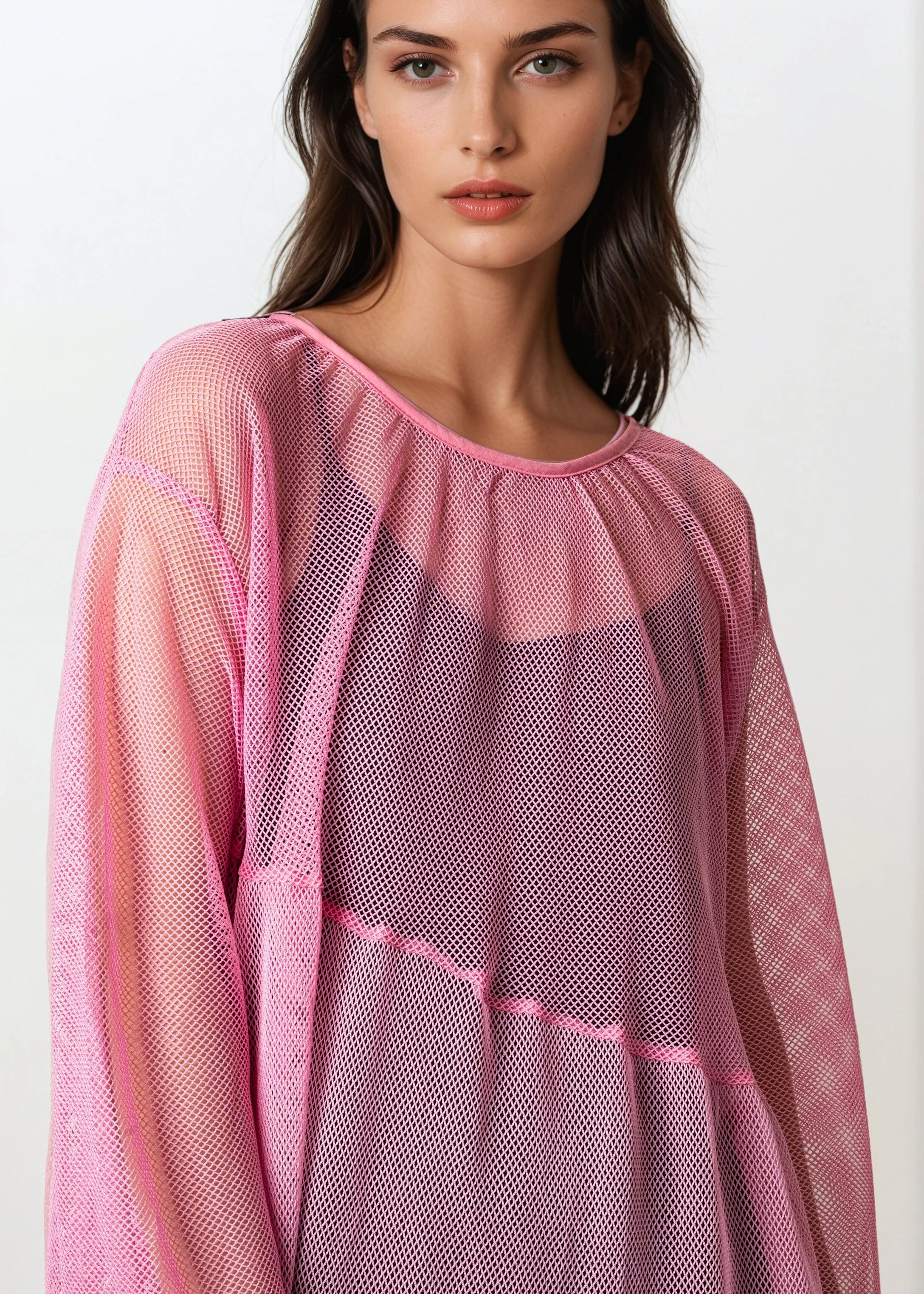 Long Sleeve Sheer Mesh Overlay Pink / One size
