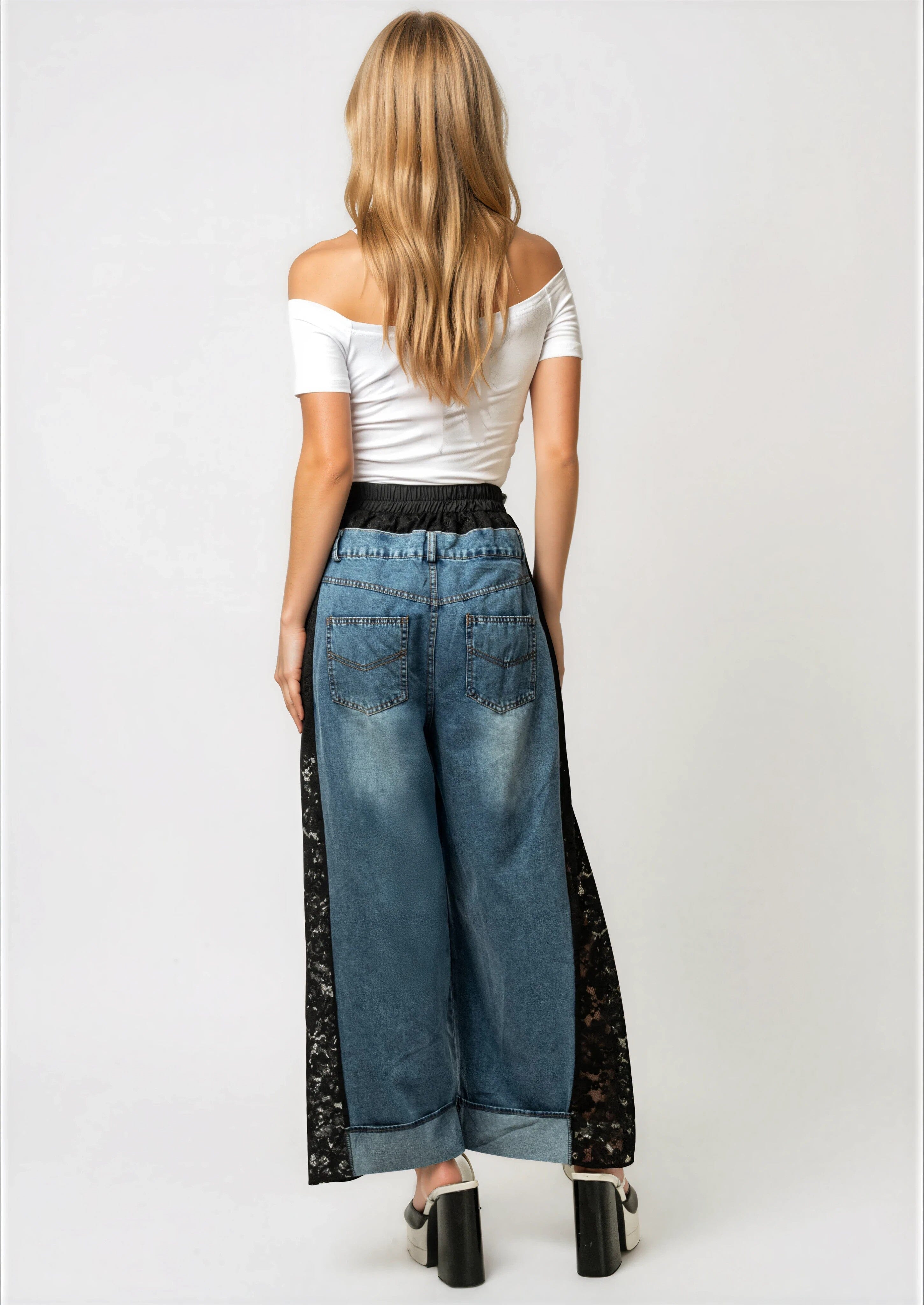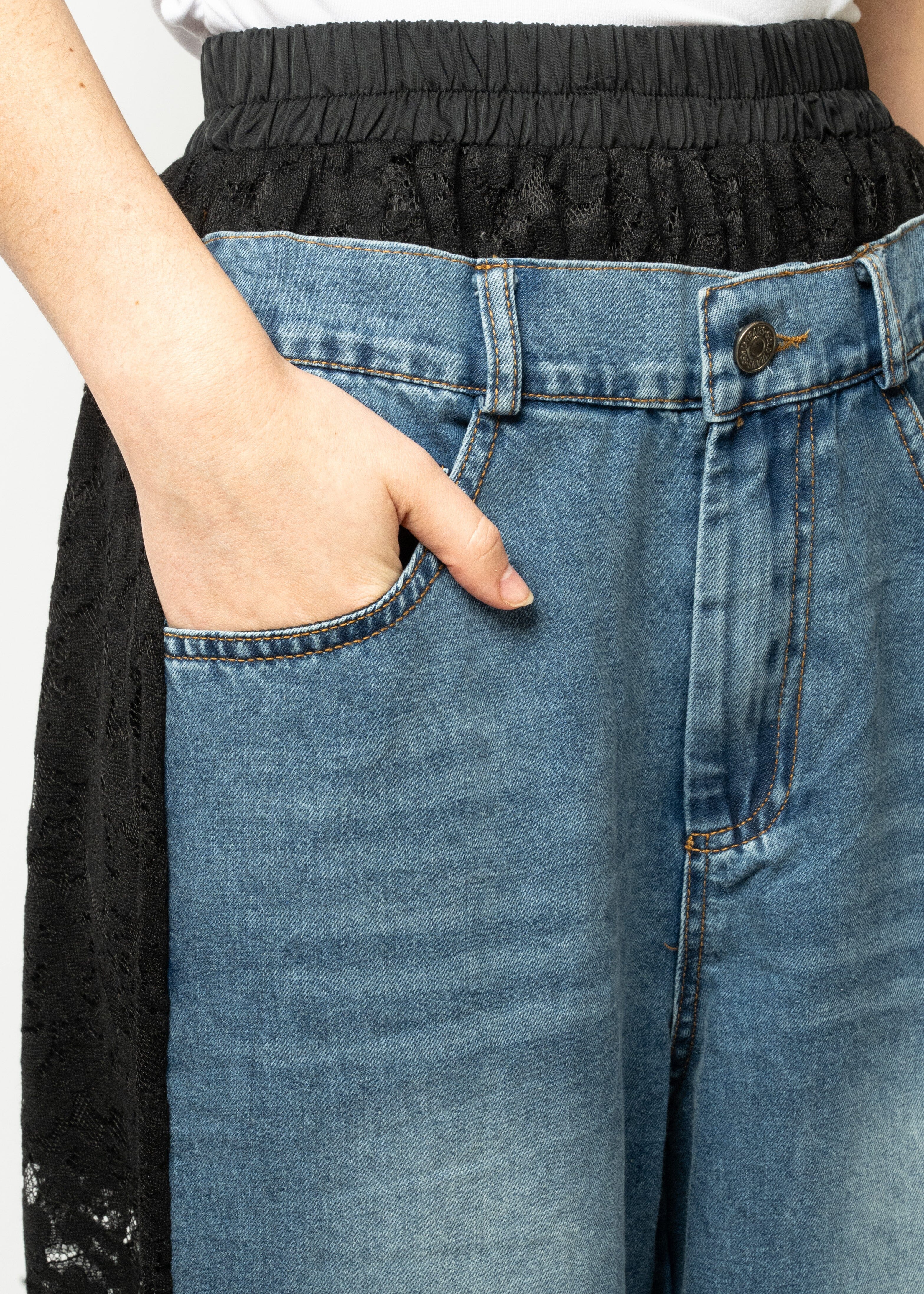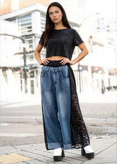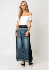 Lace + Denim Contrast Pant