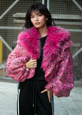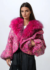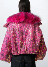 Cropped Glitter Faux Fur Jacket