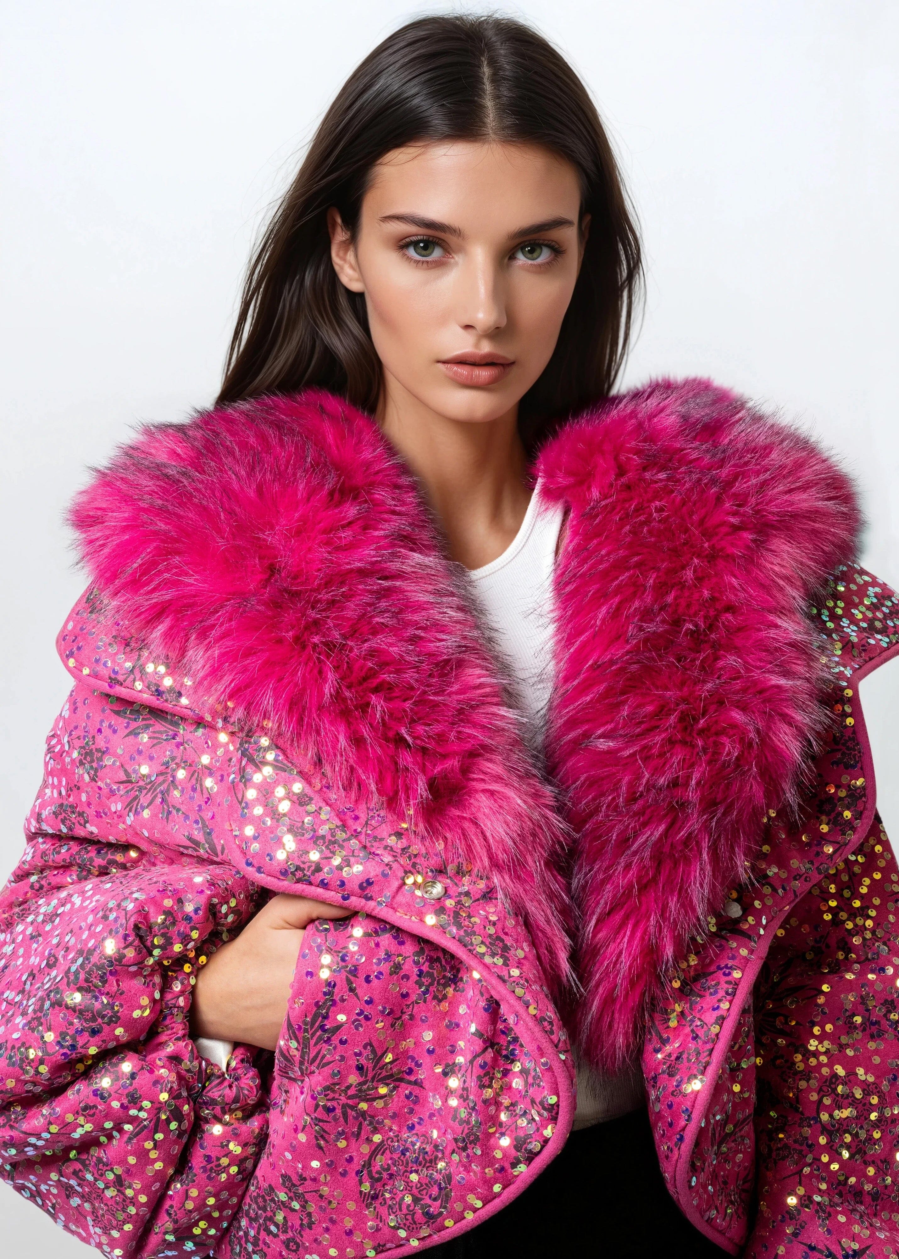 - Luxe oversized faux fur collar for max drama
