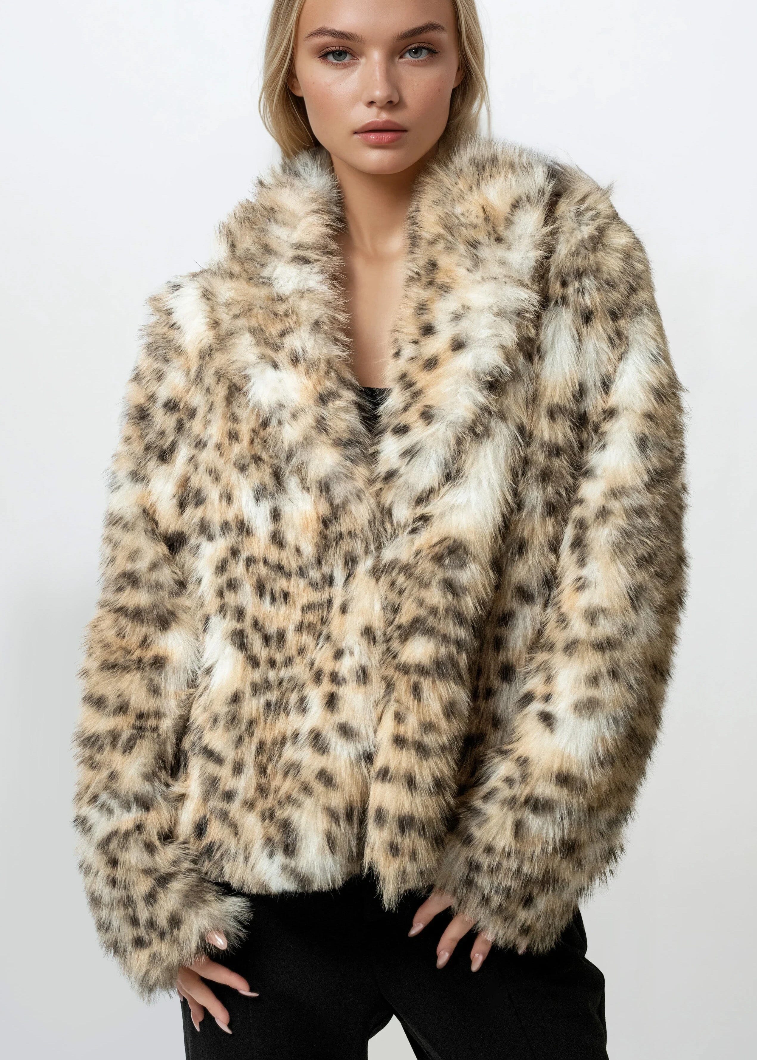 Lightweight Faux Fur Snow Leopard Coat