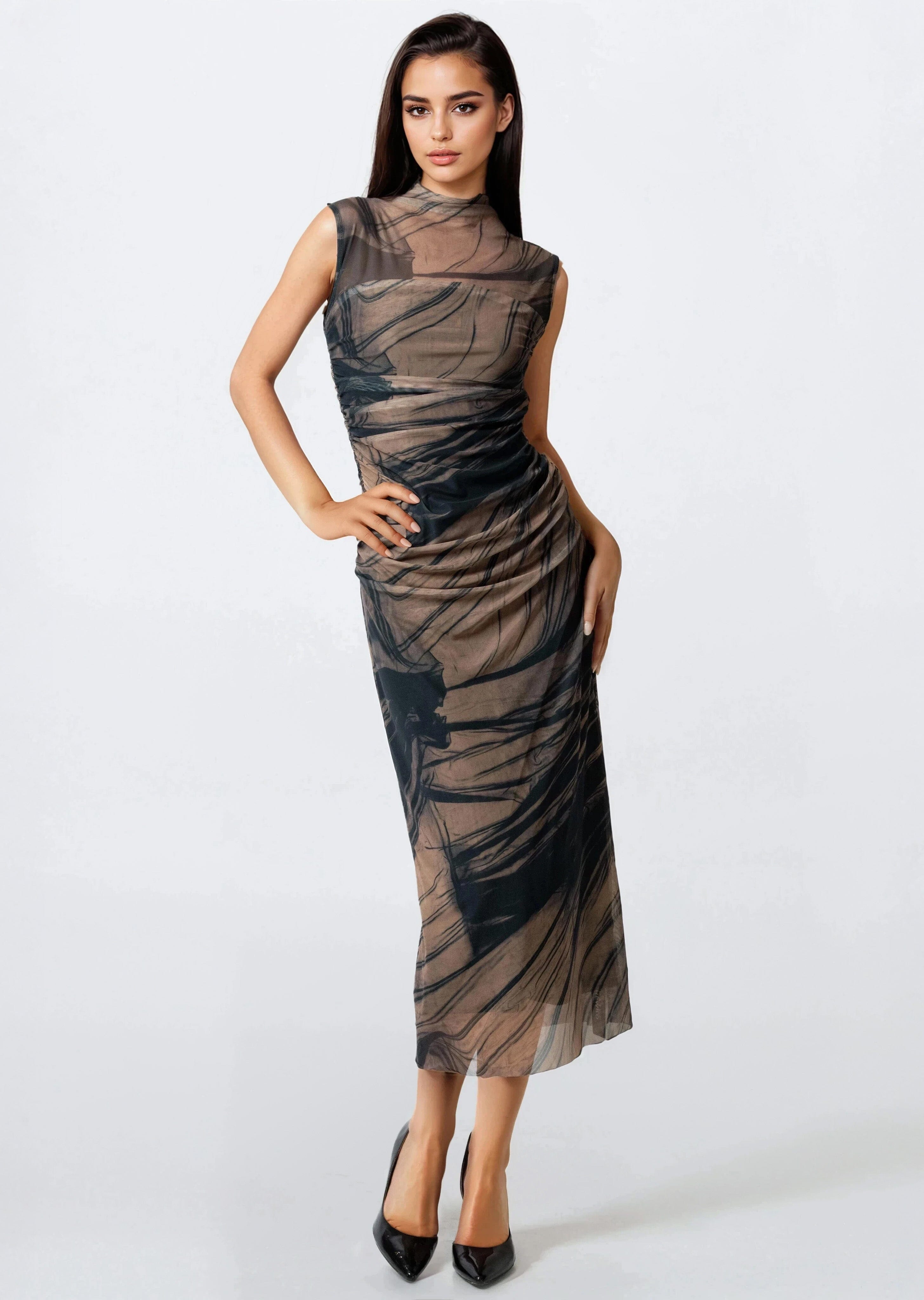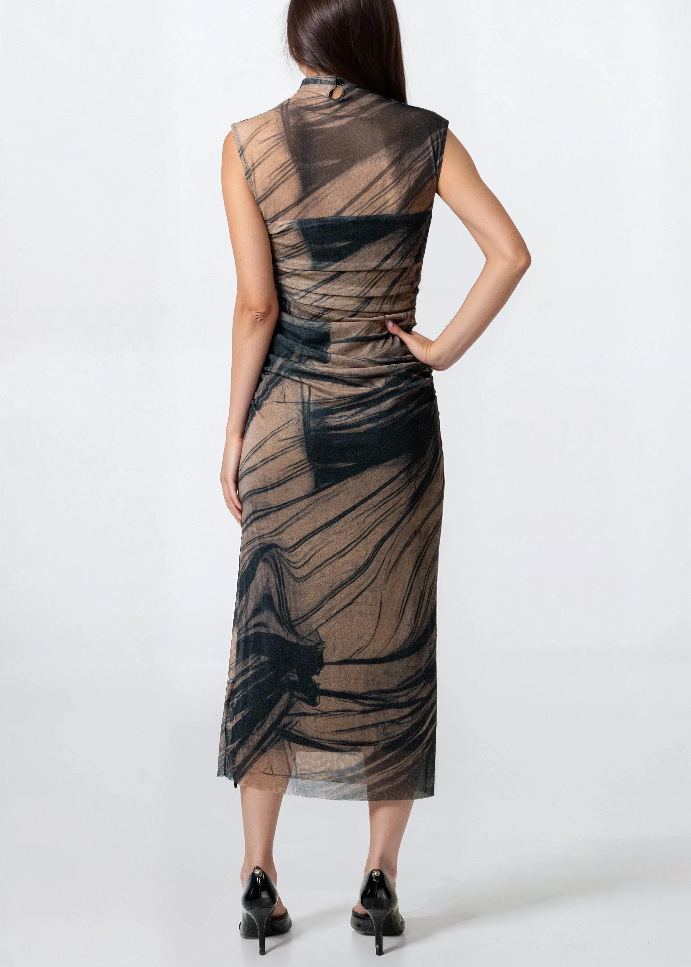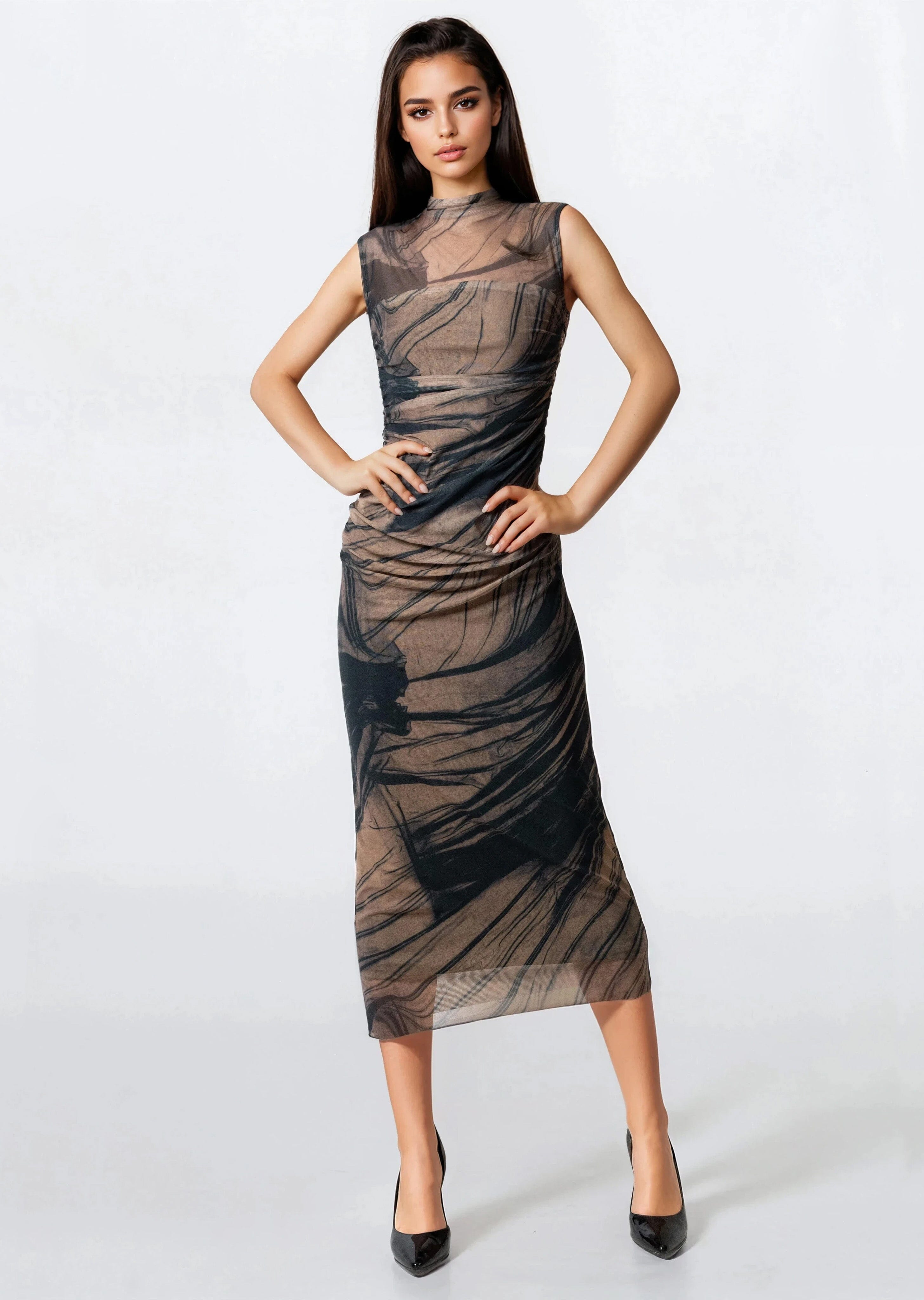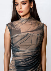 Abstract Print Mesh Bodycon Dress
