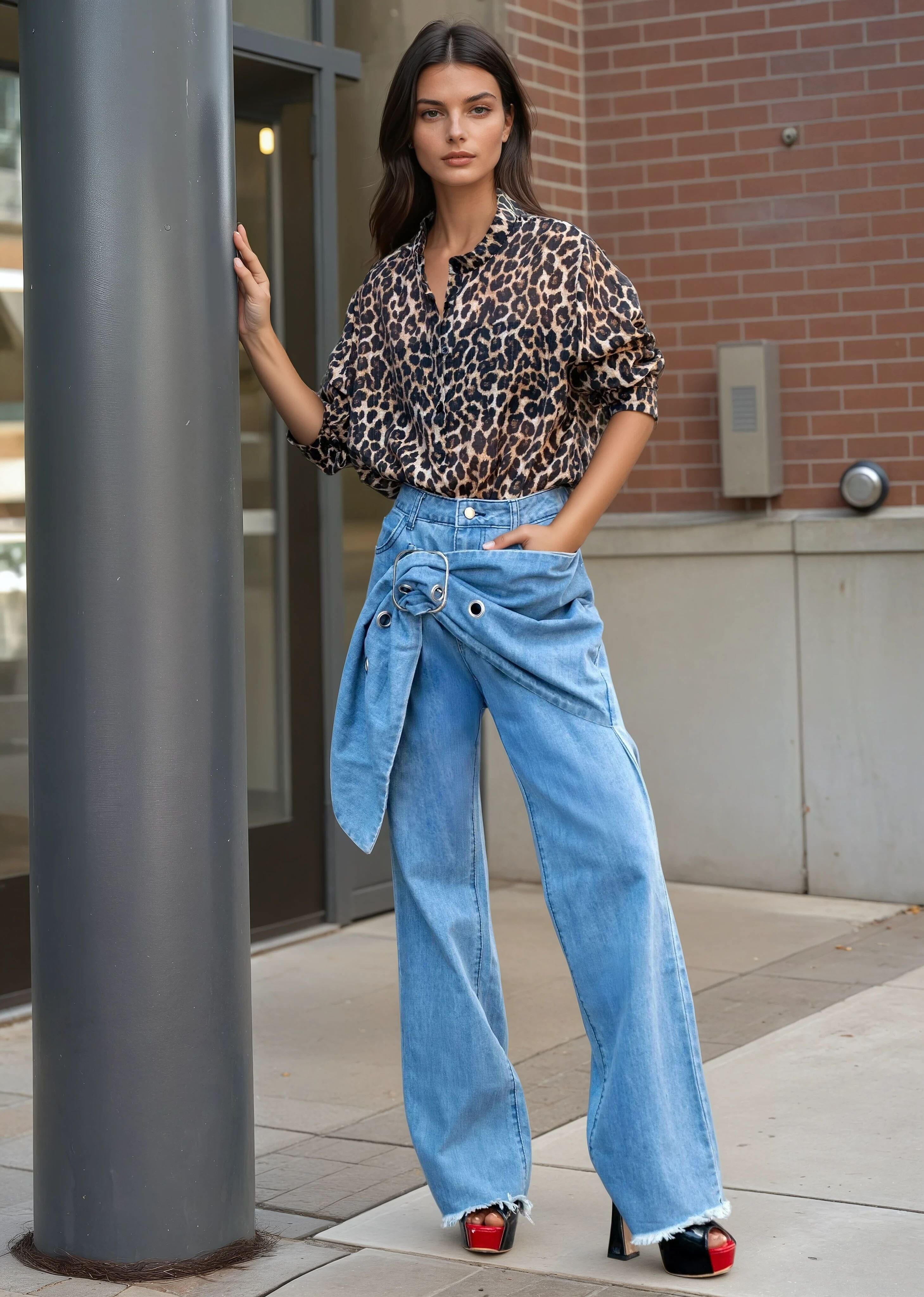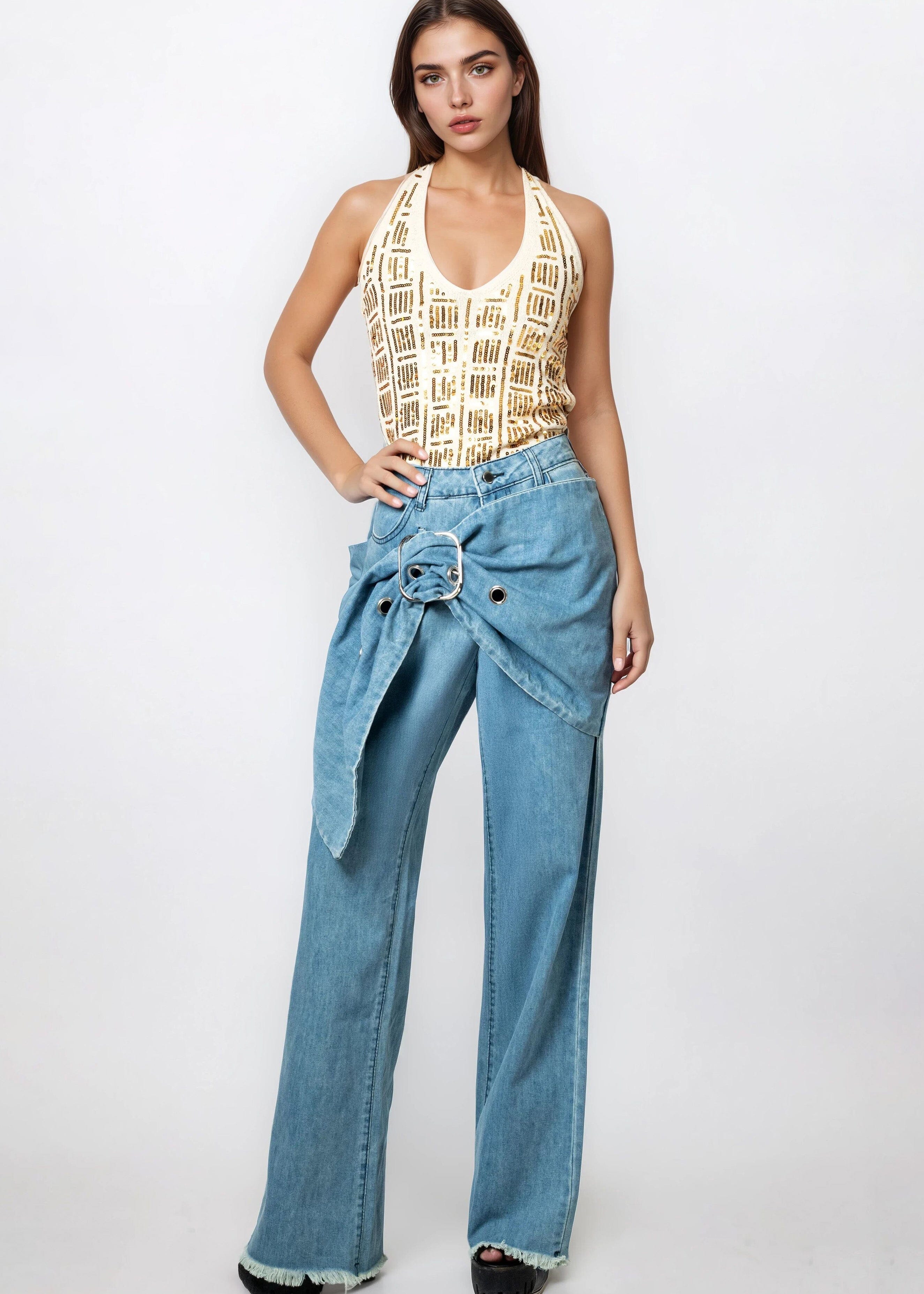 Buckle Wrap Denim Pants