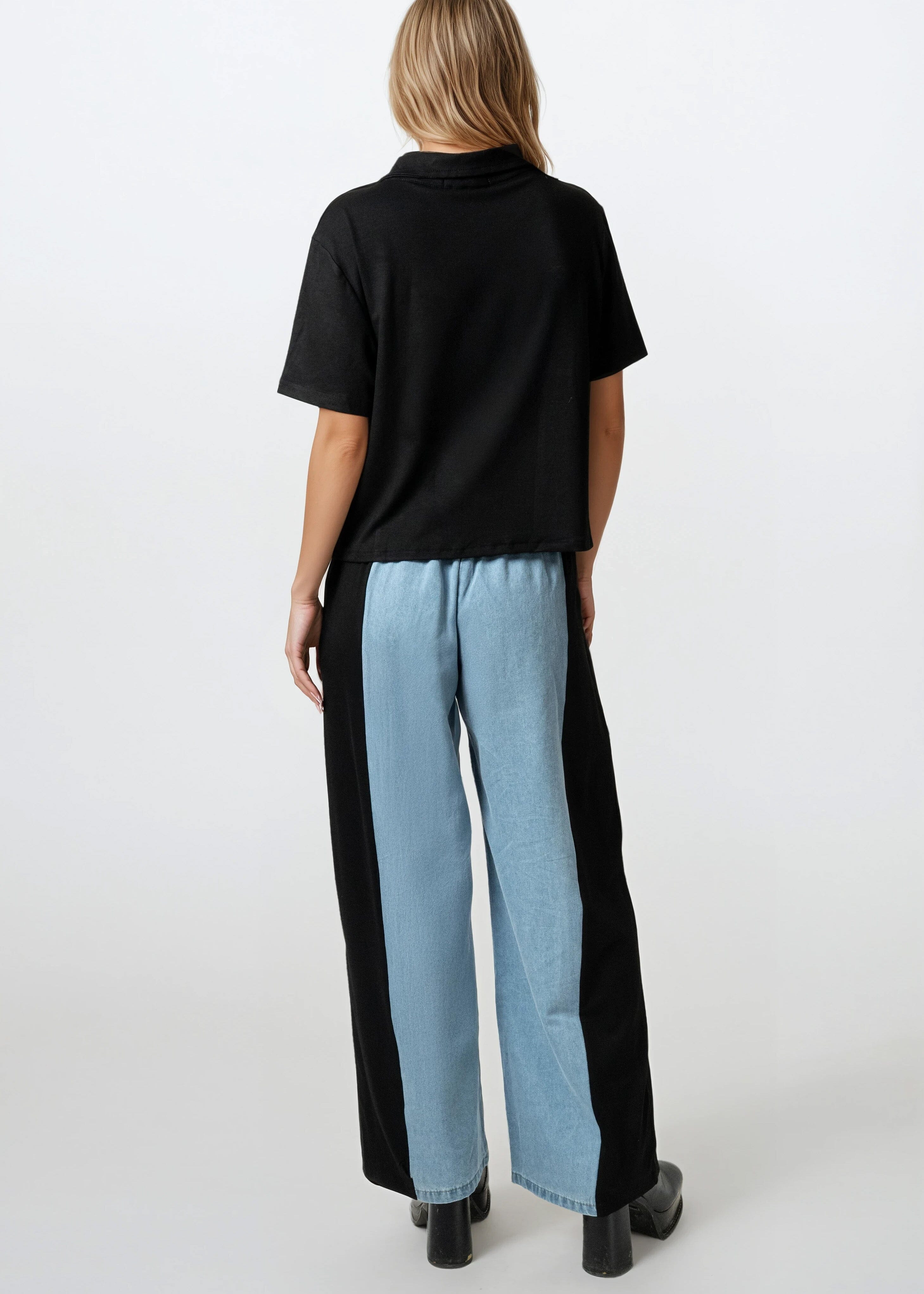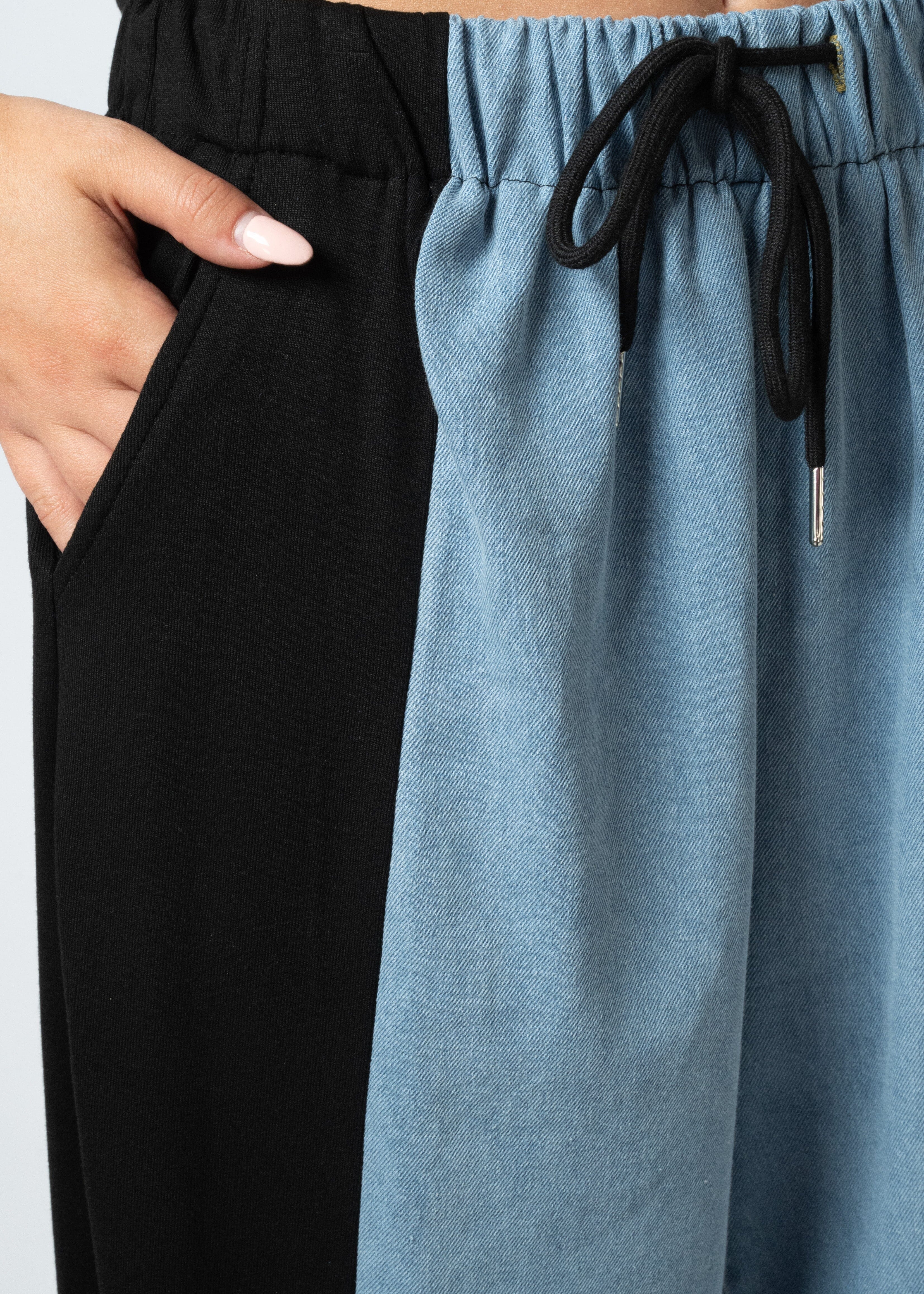 - Relaxed wide-leg drawstring pants with contrast side panels