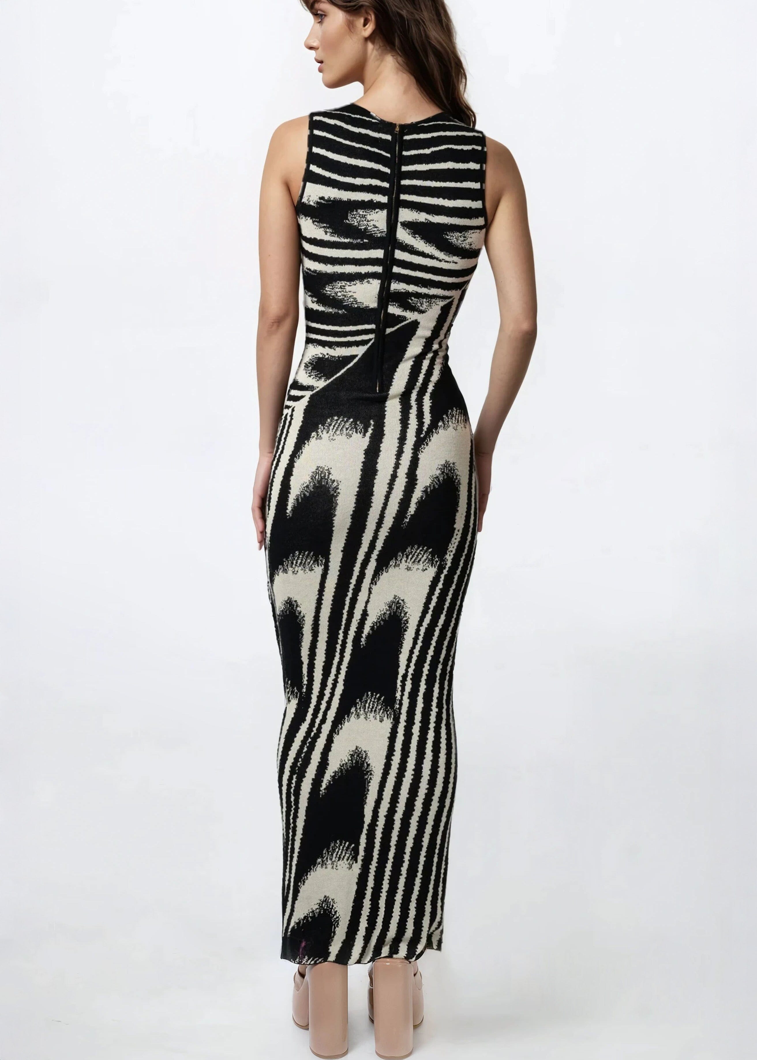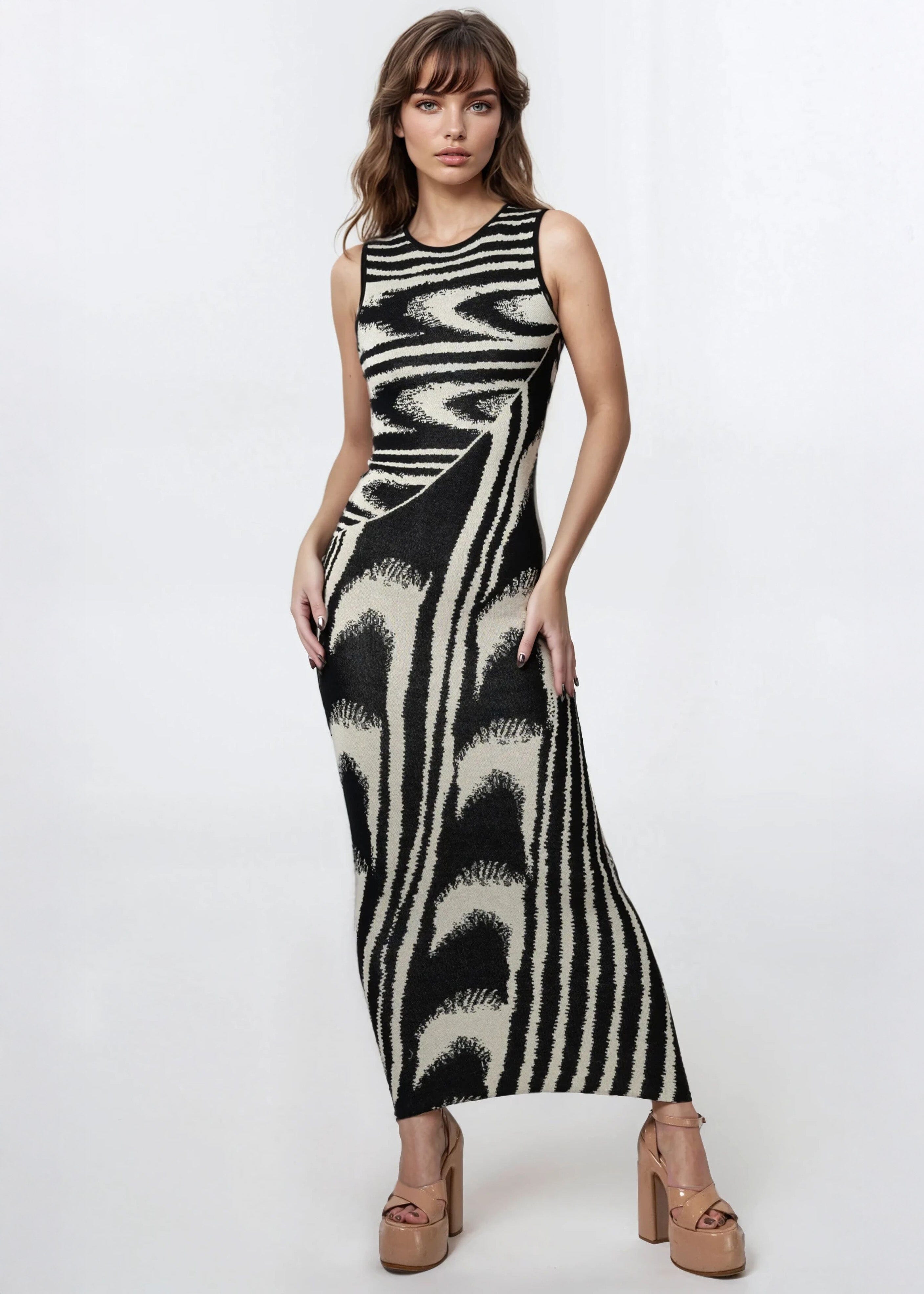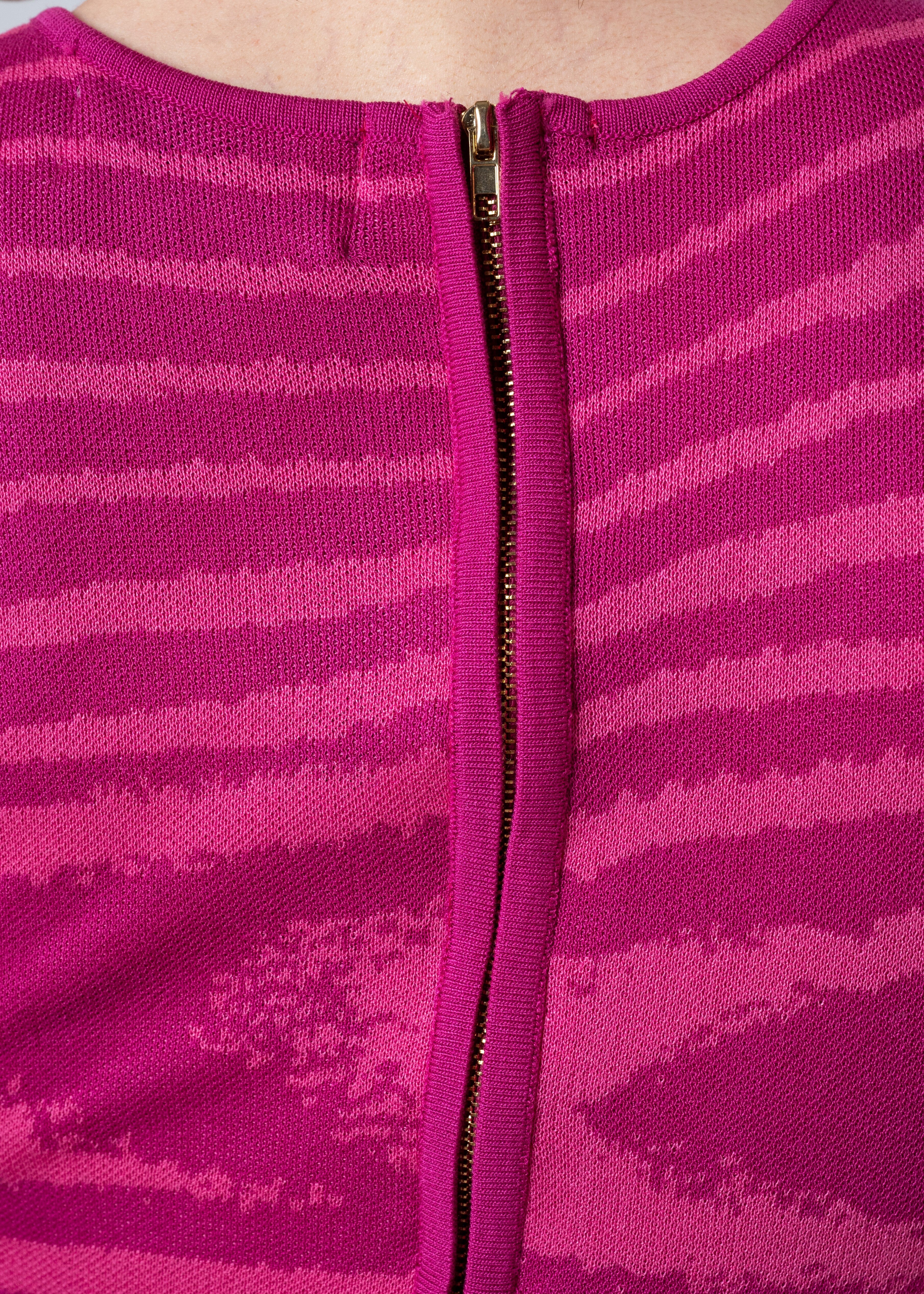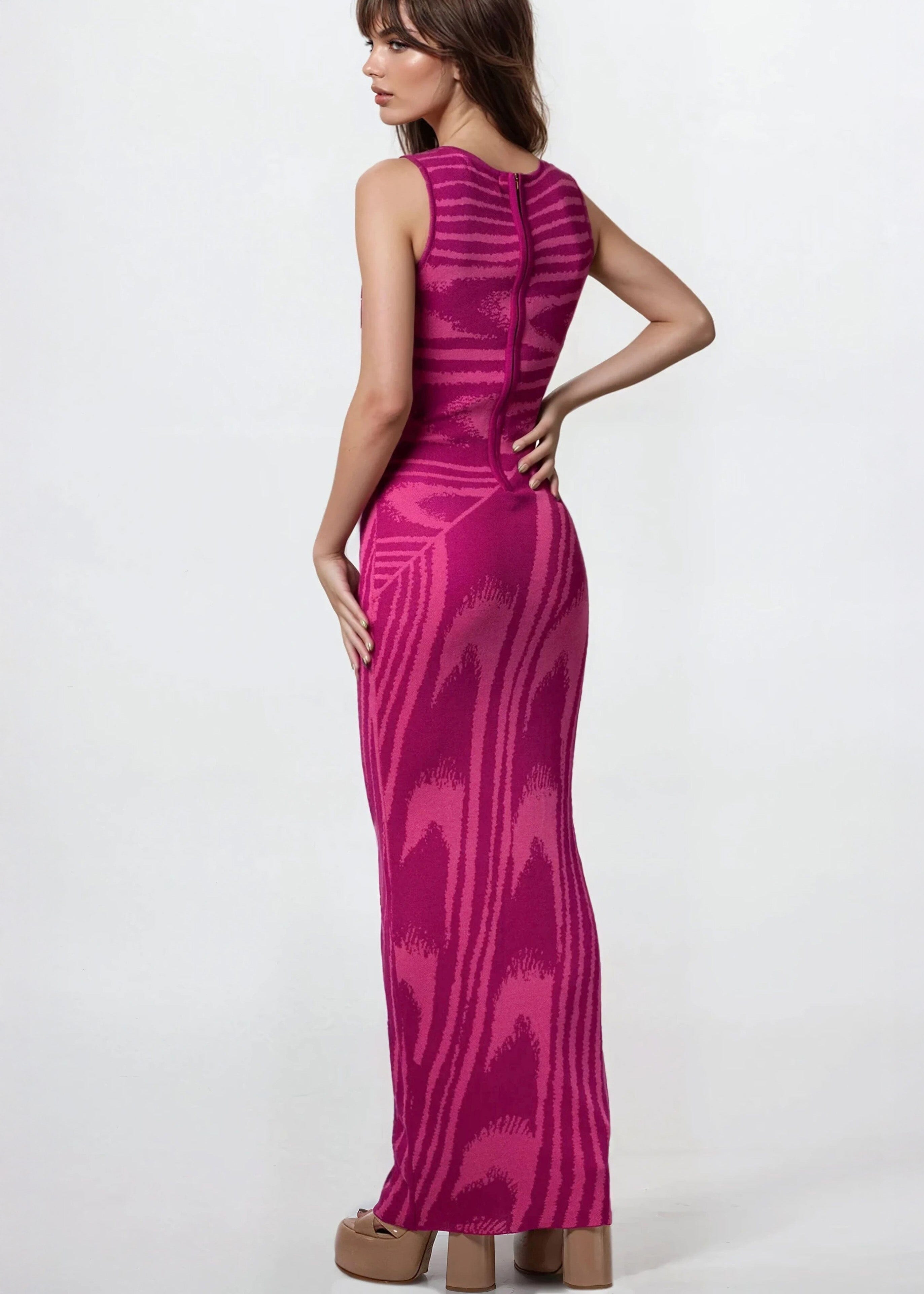 Knitted Ripple Print Bodycon Dress Hot Pink / L