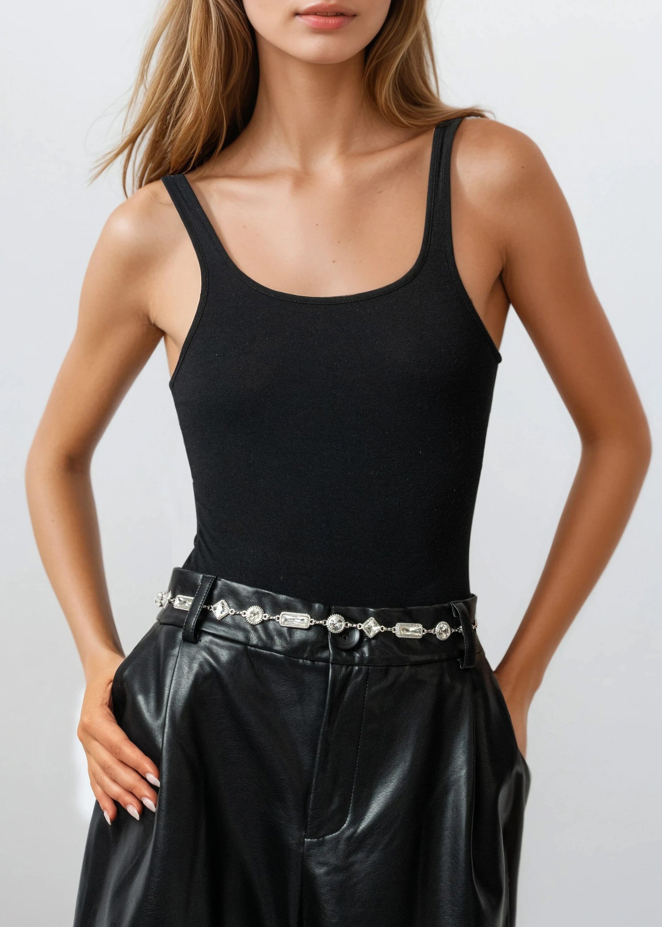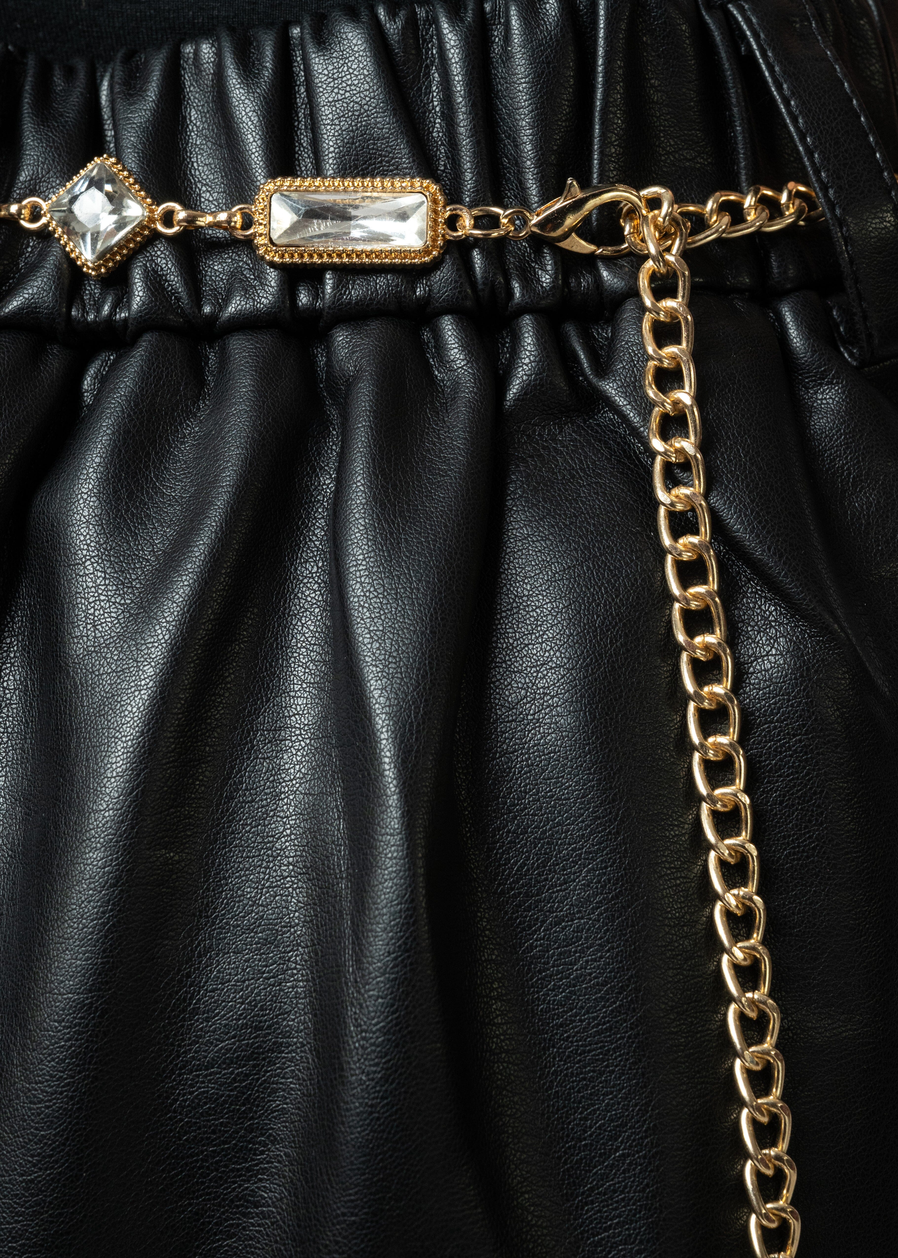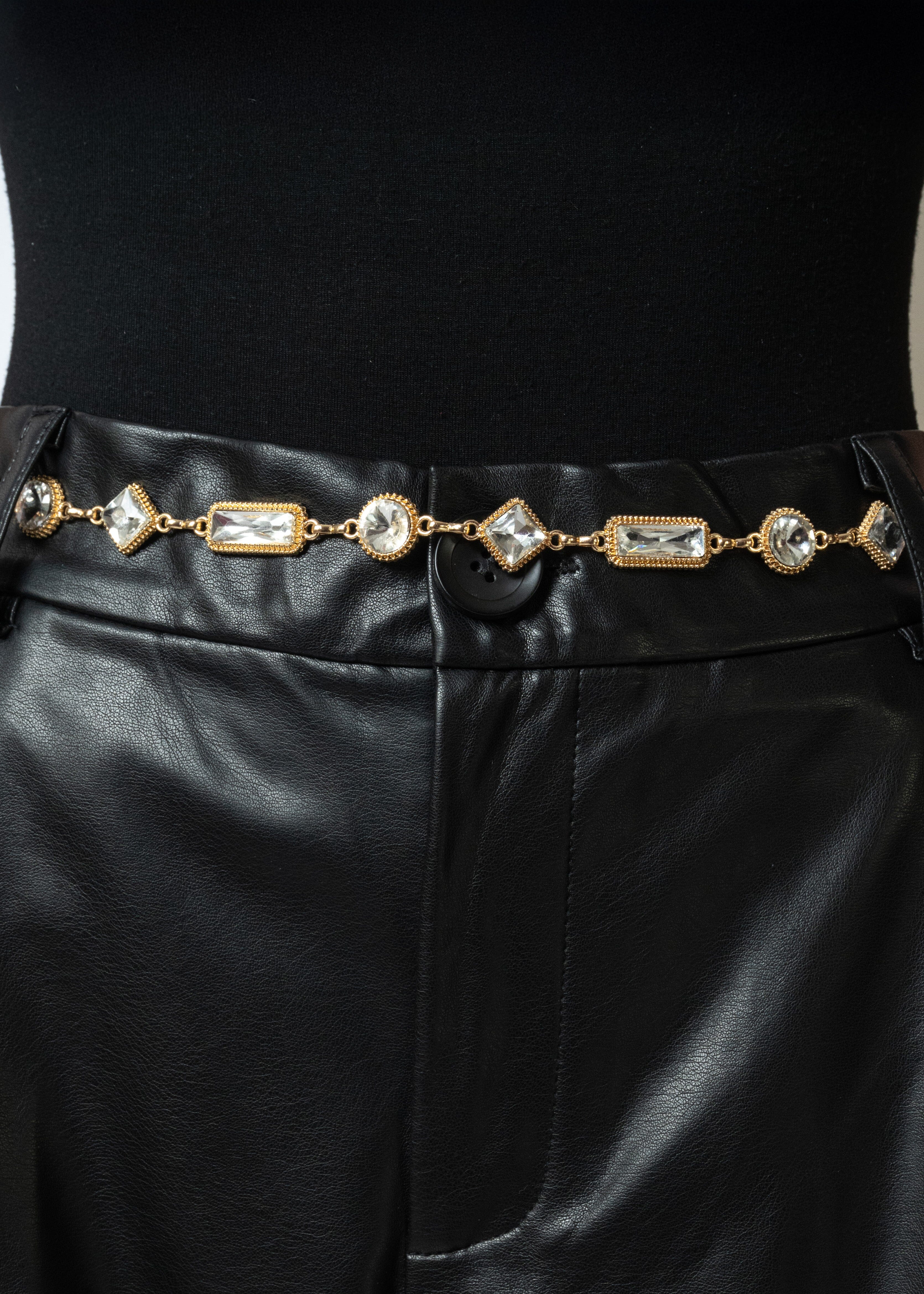 - Chain belt with oversized crystal accents