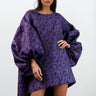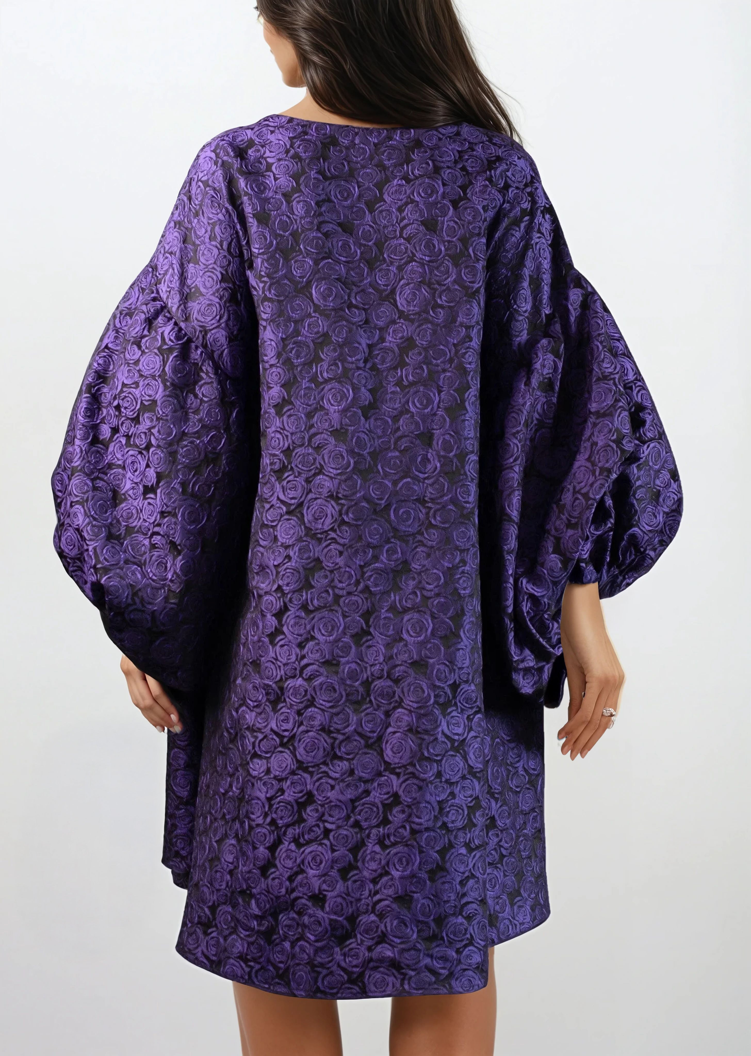 Rose Print Balloon Sleeve Dress Purple / One Size