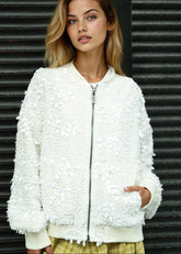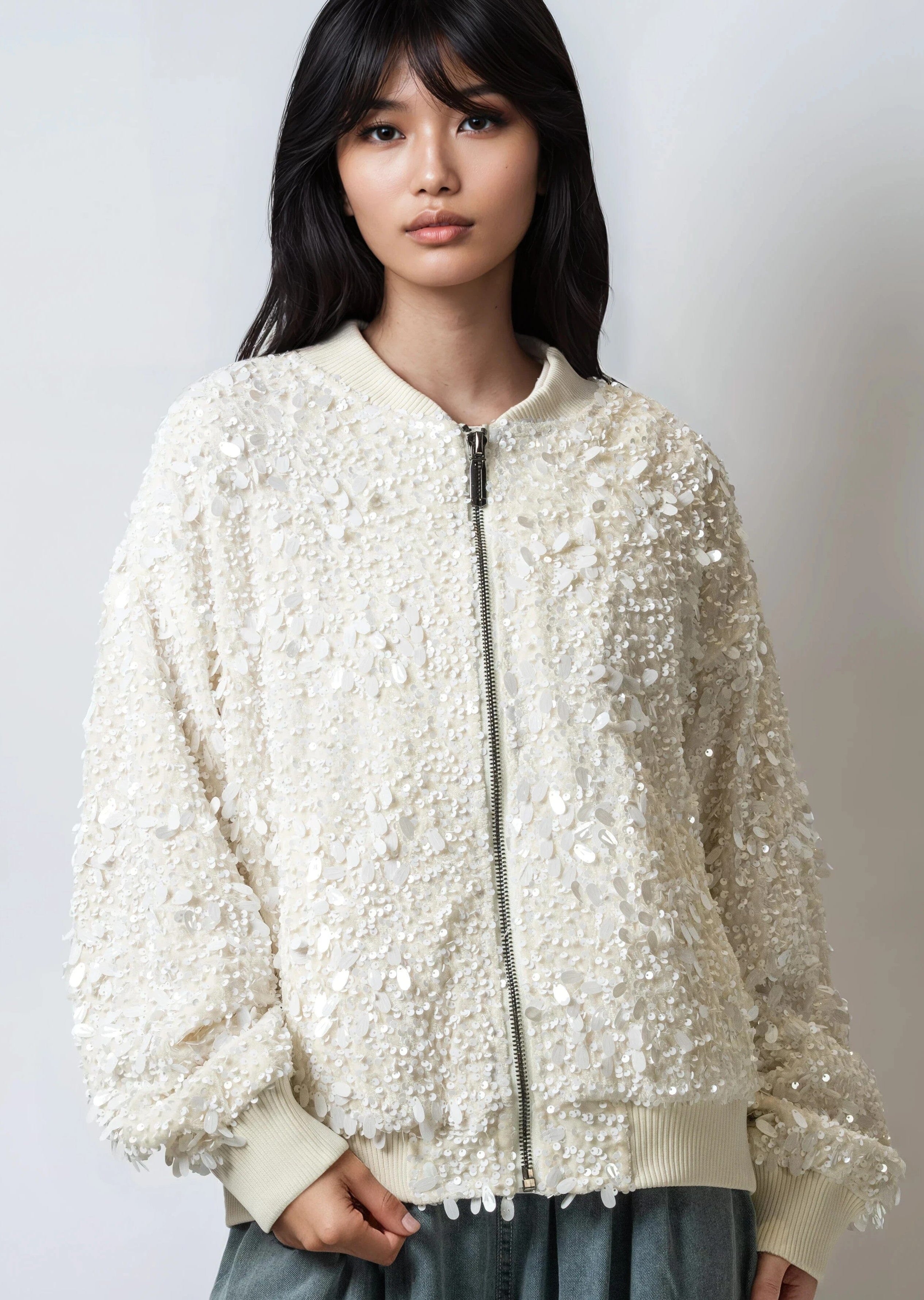 - Bomber-style silhouette with a relaxed, throw-on edge